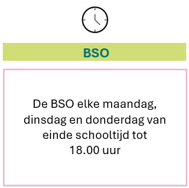 Op onze naschoolse opvang is je kind op maandag, dinsdag en donderdag van harte welkom. Samen met onze collega's uit het kindcentrum de Beuk zorgen we ervoor dat kinderen in een uitdagende omgeving rijke (leer)ervaringen op kunnen doen. Omdat we in het kindcentrum gevestigd zijn, kan je kind na schooltijd meteen door lopen naar onze pedagogische professionals. Zij staan klaar om er samen met de kinderen een fijne, betekenisvolle middag van te maken.